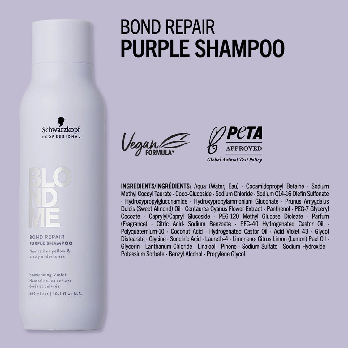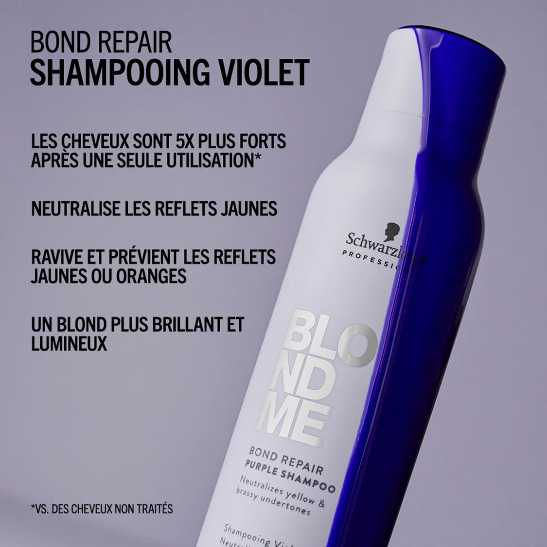 Avec la technologie Bond Repair, le shampoing violet BlondMe neutralise les reflets dorés et aide à réduire les reflets cuivrés, tout en nettoyant et en nourrissant les cheveux en douceur.